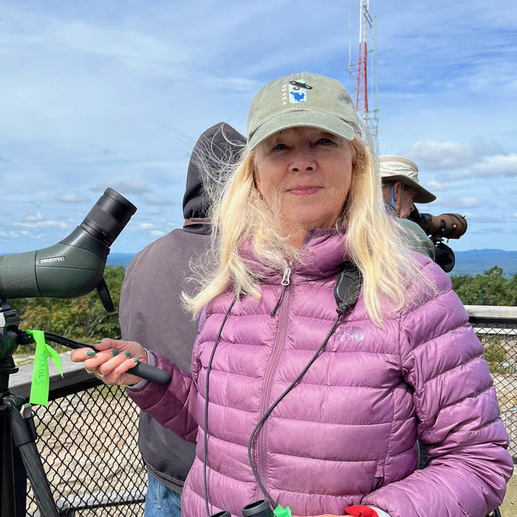 Lillian Stokes started hawkwatching over 40 years ago when she went to Wachusett Mountain with Paul Robert’s class and spotted a Bald Eagle. That moment changed her life from being a psychiatric social worker to an award-winning author and photographer of 35 Stokes Guides which have sold 6 million copies. Her latest book will be The Stokes Guide to Finches of the United States and Canada (with coauthor Matthew A. Young) to be published September 17, 2024. Other Stokes Guides include The Stokes Guide to Birds of North America, The New Stokes Guide to Birds Eastern and Western editions, Stokes Beginner’s Guides Series, Stokes Guides to Bird Behavior, and many more. Lillian was executive producer, producer, cohost, and videographer for two national PBS Birdwatching TV Series seen by 40 million viewers. For 35 years she has educated the birding public, giving keynote talks at birding organizations all across the country. Other achievements include; Federal Duck Stamp Judge 1998, Partners in Flight 2005 National Conservation Award, 20 years of licensed products in the bird feeding industry, and Lifetime Achievement Award Kappa Kappa Gamma. Member of Nuttall Ornithological Club since 1986 and former board member of NH Audubon.