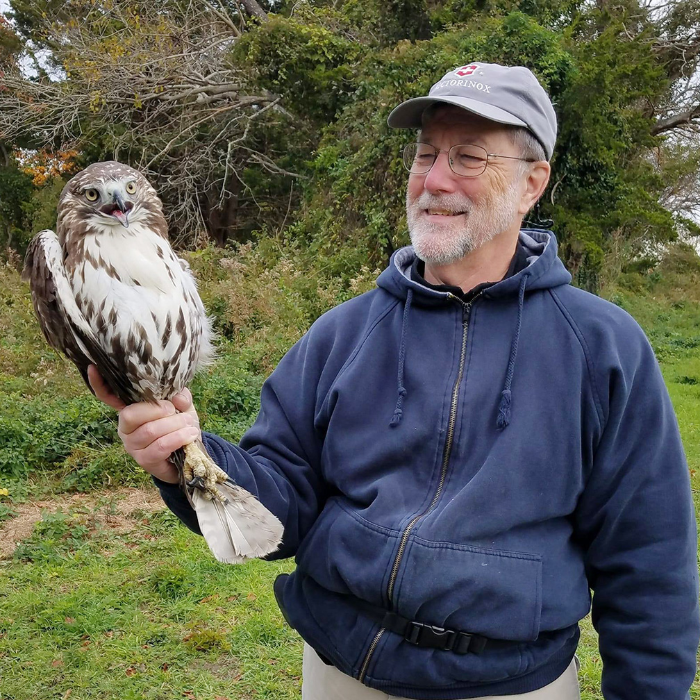 I began birdwatching in 1985, watching birds in my backyard in northern Virginia.   Shortly after that, in the 1980s I went on a raptor watching field trip sponsored by our local Fairfax County Park Authority.  That was all I needed.  I learned from two of the trip leaders that there was someplace called Cape May where people captured and banded raptors.  I started helping them in 1988, earned a sub-permit to band raptors in 1992 and have been banding ever since.  When William (Bill) Clark retired from the Cape May Raptor Banding Project in the early 2000s he selected a group of us to run the Project and I became President.  The Project has now banded over 150,000 raptors during fall migrations and contributed to numerous science projects such as tracking, presence of diseases and toxins and DNA analysis of migrating raptors.  We continue to contribute to several multi-year science projects.  Each fall, we also sponsor an aspiring young wildlife technician to work with us and learn raptor identification, trapping, banding and public speaking skills.  These field technicians have gone on to earn graduate degrees, manage National Wildlife Refuges, and make their mark in wildlife biology.  They are our alumni and legacy.