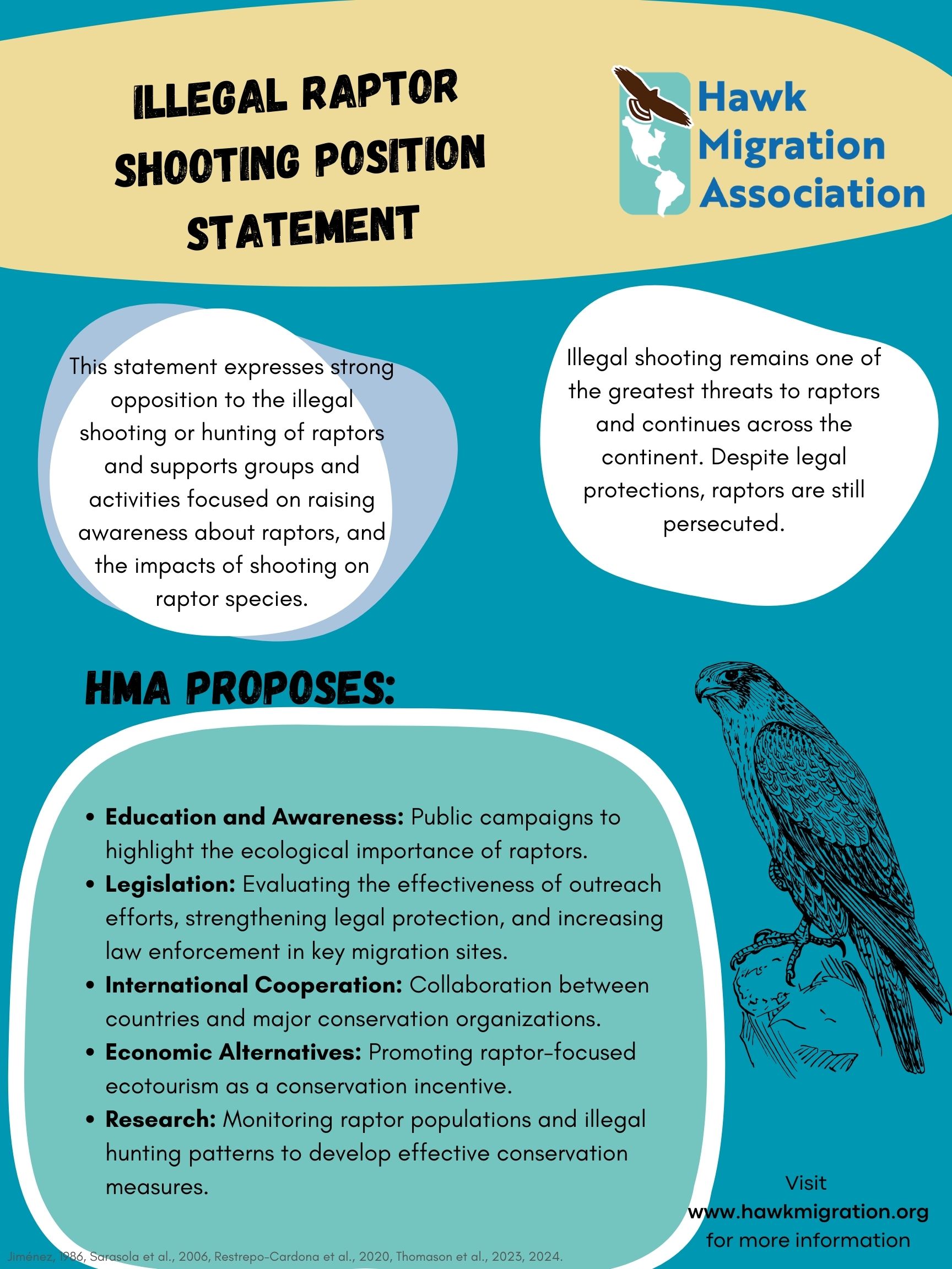 HMA strongly opposes the illegal shooting or hunting of raptors and supports groups and activities focused on environmental education to raise awareness about raptors, this problem, and the impacts of shooting on raptor species.