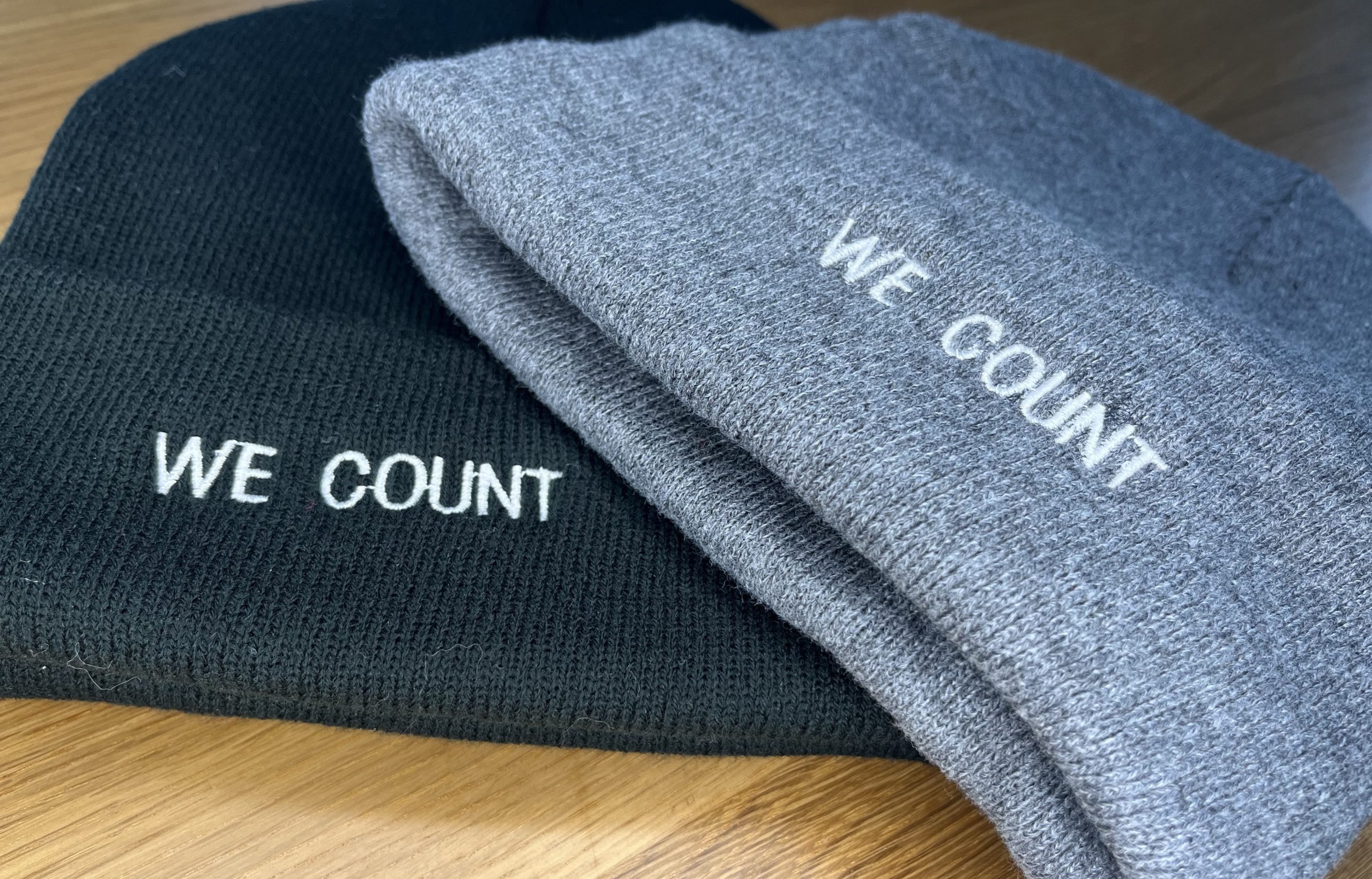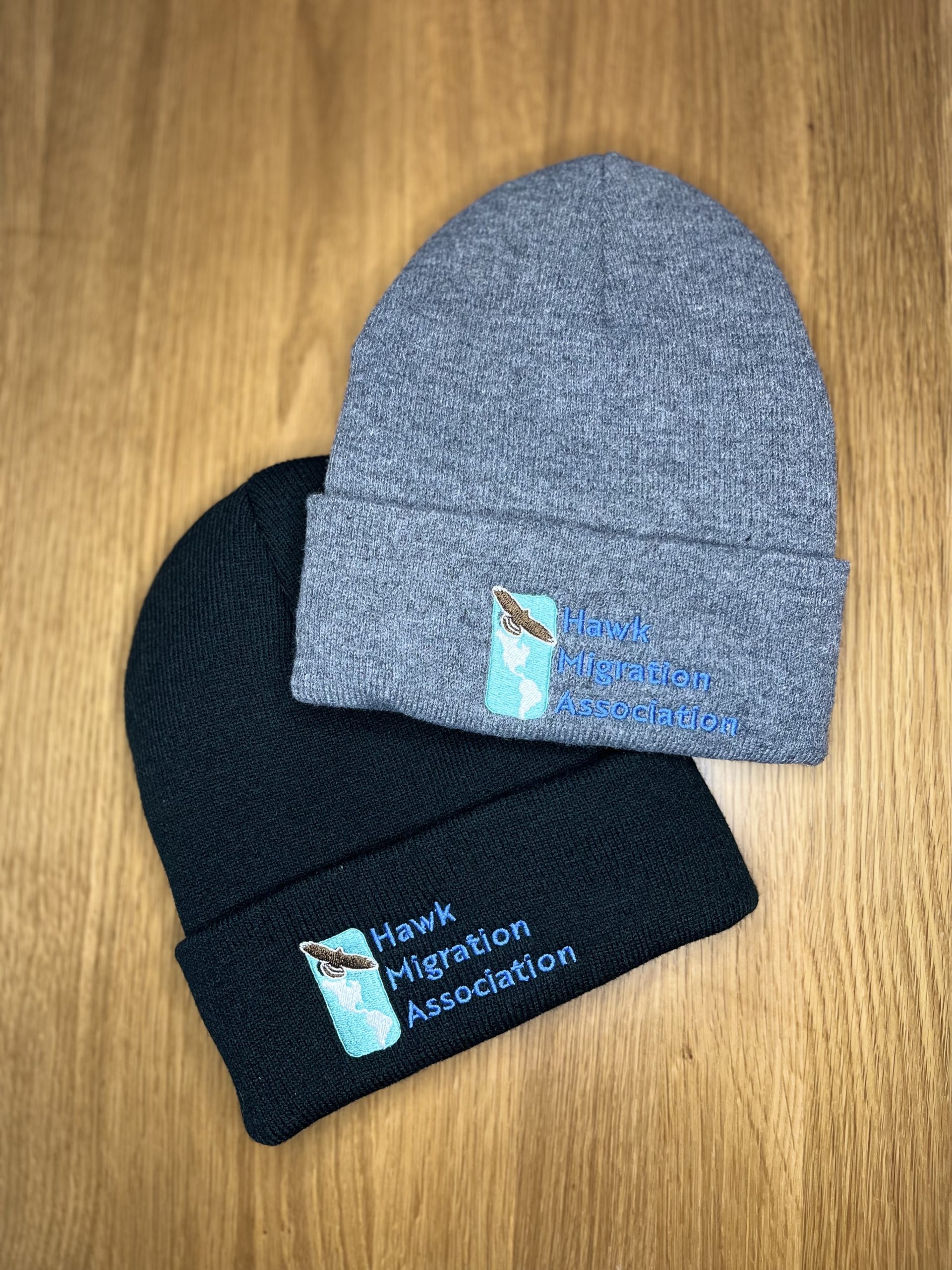 Keep warm with our soft, knit beanies, embroidered with HMA’s new logo. Available in black and grey. Perfect for cold, windy hawkwatching days! Made from brushed polyester fiber. WE COUNT enbroidered on the back.